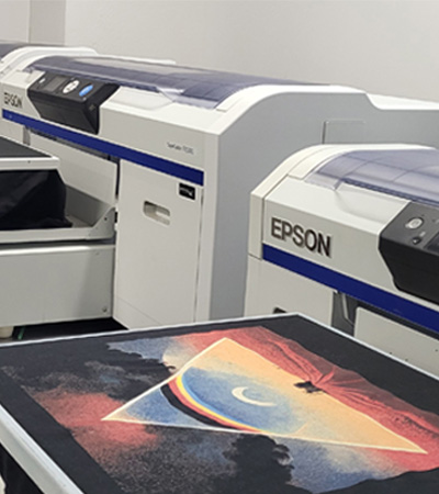 Impression directe sur vêtement (DTG) pour les visuels complexes, dégradés infinis et petites quantités.